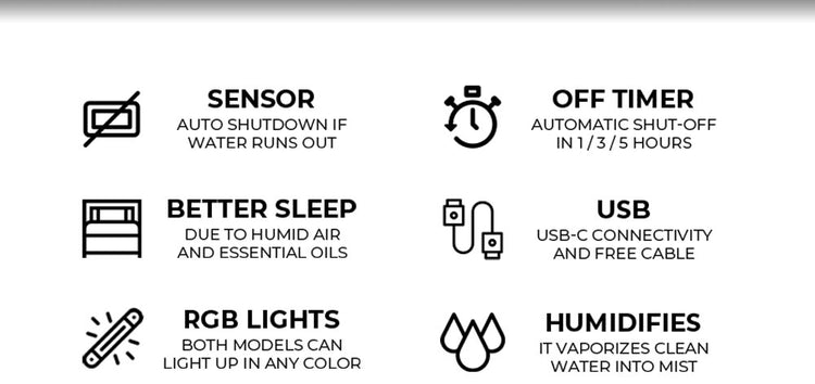 We recommend using approximately 4-5 drops of our branded essential oils for 150 ml of water. This will provide a balanced fragrance that is not too overpowering while allowing you to enjoy the full benefits of the essential oils. For a milder effect, we suggest 2-3 drops, and for a stronger fragrance, 7-8 drops.